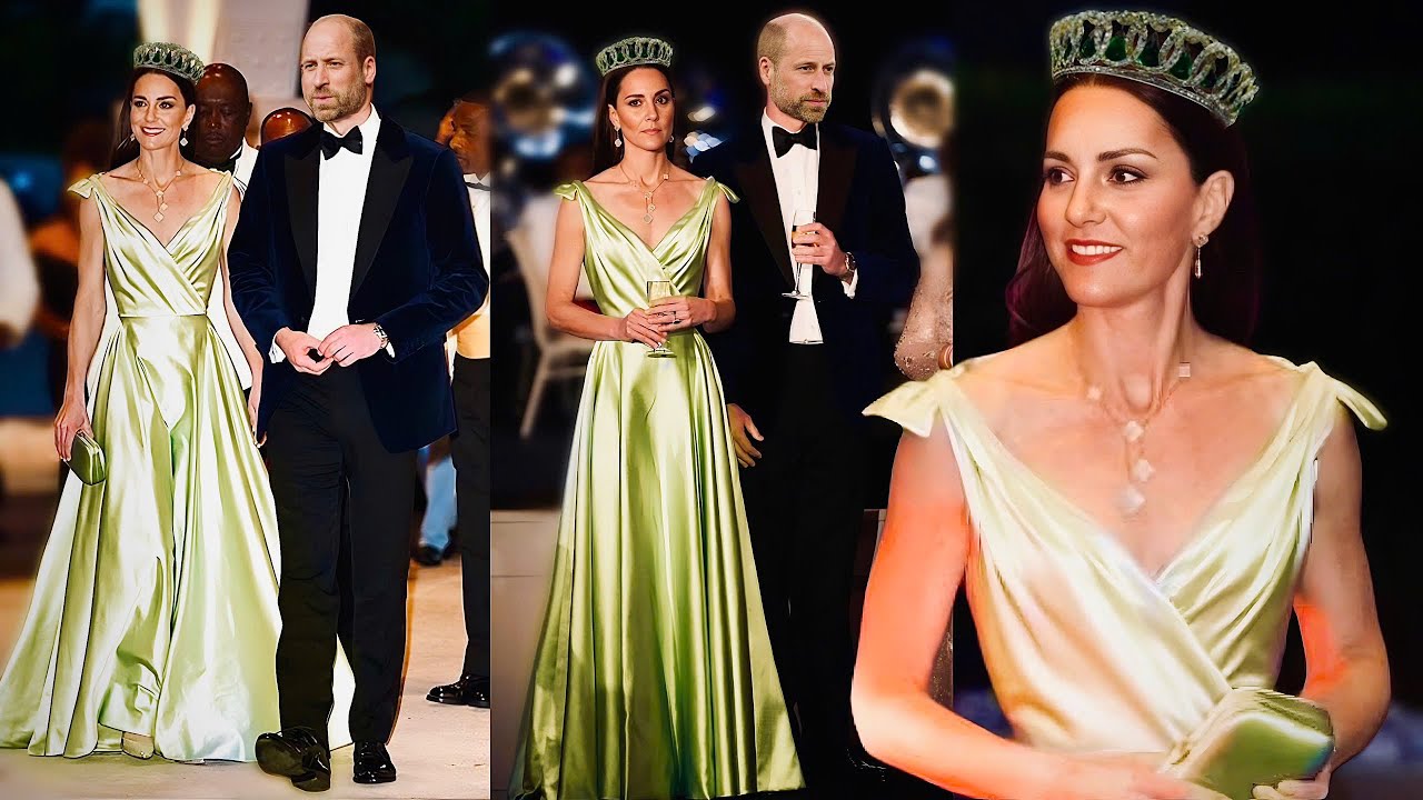 The evening was one of royal tradition at its finest. Catherine’s gown, a masterclass in sophistication, sparkled under the event’s lights. The princess chose a shimmering, floor-length princess gown that exuded regal charm. Its classic design was complemented by delicate embellishments that brought an ethereal quality to her already commanding presence. The intricate beading and timeless silhouette of the dress were balanced perfectly with her effortless poise, allowing Catherine to radiate both contemporary allure and royal gravitas.