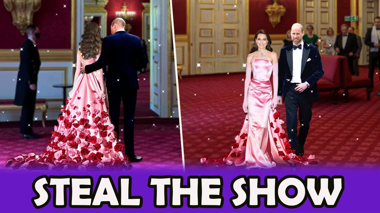 The Princess of Wales stepped into the palace’s grand ballroom wearing a floor-length, blush-pink gown that shimmered under the chandeliers. Designed by a yet-to-be-named British couturier, the dress featured delicate chiffon layers, a fitted bodice, and a flowing train that added a touch of fairy-tale magic. The vibrant hue was a daring departure from her usual understated palette, signaling confidence and a modern twist on royal glamour.