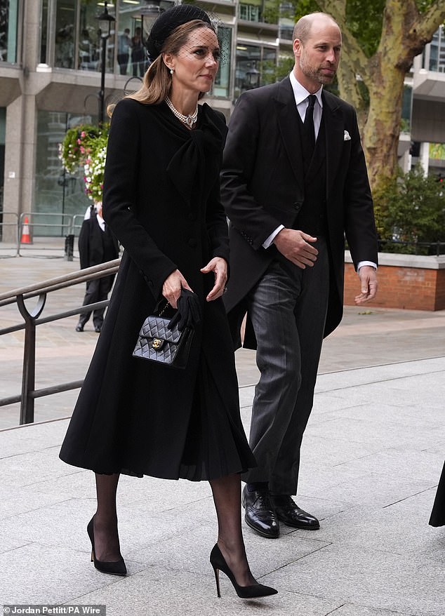 The Prince and Princess of Wales arrive for the funeral at Westminster Cathedral today