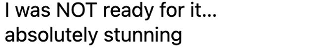 Meanwhile, a third penned: ‘I was NOT ready for it… absolutely stunning.’