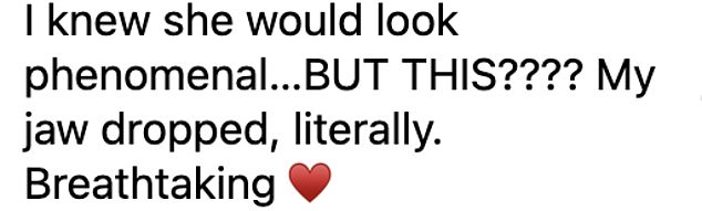 One impassioned fan penned: ‘I knew she would look phenomenal…BUT THIS???? My jaw dropped, literally. Breathtaking.’