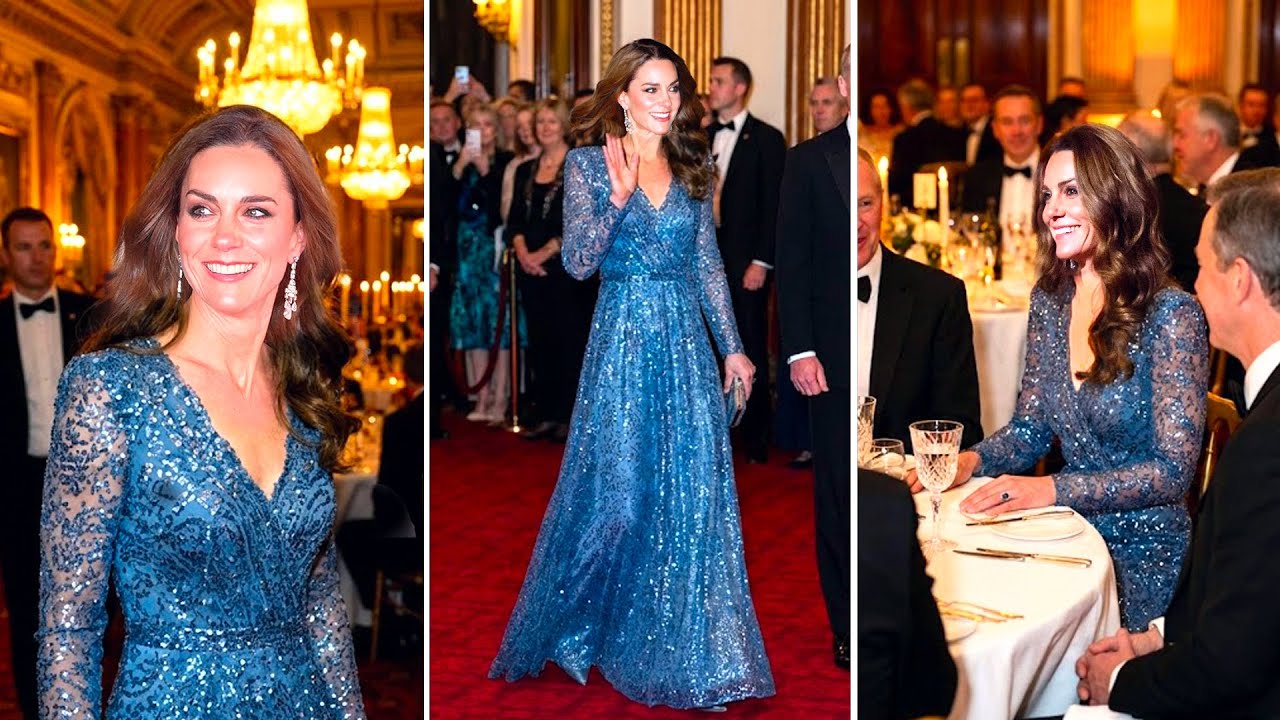 Windsor Is Buzzing Now! HRH Princess Catherine of Wales DAZZLES In in Ice-Blue Jenny Packham And Queen’s Heirloom Diamond Earrings at Diplomatic Gala
