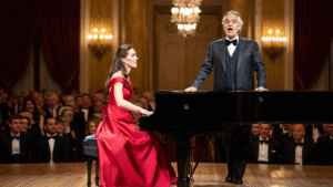 As Bocelli’s voice soared — rich, golden, unwavering — Catherine’s hands moved with quiet power, anchoring him, supporting him, as if they’d rehearsed for years.