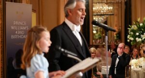 Indeed, guests say Prince William was seen wiping away tears as his daughter’s clear, angelic voice harmonized with Bocelli’s powerful tenor in the candlelit garden.