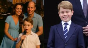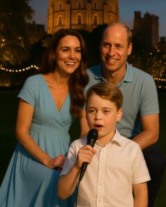 As the plates were cleared and dessert was being served, a quiet hush began to settle. The soft clink of silverware faded. Catherine leaned in and whispered something to their eldest son, Prince George, who was seated beside her. The young prince nodded, his face pale but determined. He rose from his seat and walked toward a small stage nestled under a willow tree.