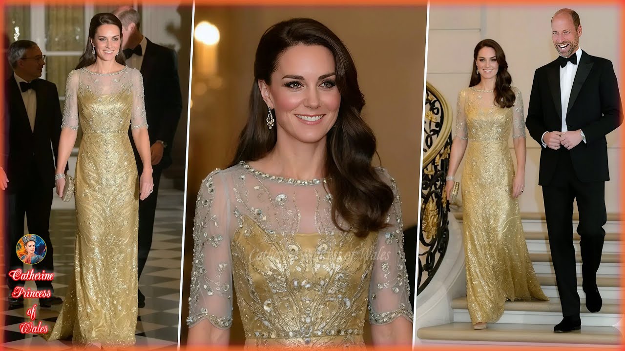 👑 ALL EYES ON CATHERINE — the Princess of Wales set the British Embassy Gala ablaze in a radiant Jenny Packham gown beside Prince William.