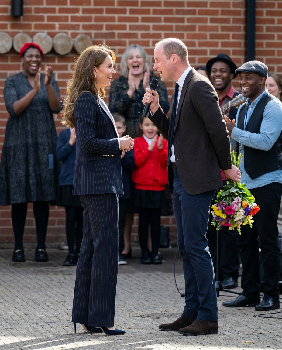 In a world where flamboyant gestures often attract attention, sometimes it is the unexpected moments that leave the deepest impression. Recently, in a delightful turn of events, Prince William captured hearts when he unexpectedly hid a bouquet of flowers behind his back and stole a microphone from a street band to sing to his beloved wife, Princess Catherine. This spontaneous act not only showcased his romantic side but also reminded us of the beauty of love expressed in the most unexpected ways.