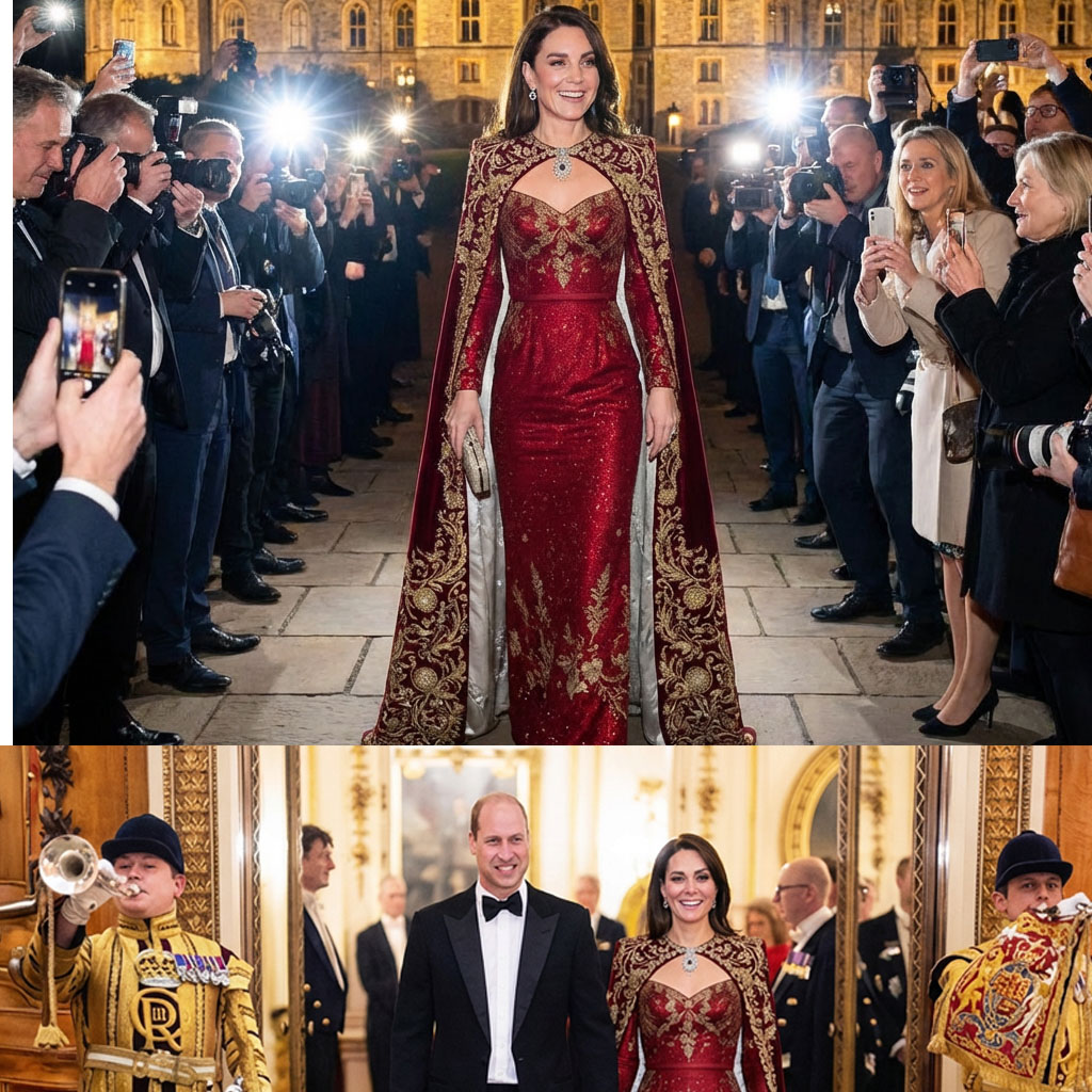Fans are astounded. At Windsor, Princess Catherine ignites her crimson queen era while wearing an iconic gown and queen’s jewels. Her latest appearance at Windsor Castle has heralded a new chapter in royal fashion, captivating audiences worldwide and redefining the perception of modern royalty. This extraordinary display of style, grace, and political symbolism has been a transformative event, sparking debates among fashion enthusiasts, royal watchers, and cultural commentators alike. Princess Catherine’s choice of ensemble was more than just a sartorial decision; it was a statement of strength, unity, and regal authority. Her stunning crimson gown, elevated by exquisite queen’s jewels and dramatic cape details, embodied a powerful narrative of resilience and diplomatic elegance that will be remembered in royal history for years to come.