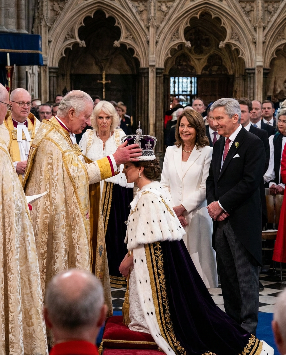 As the decree was read, the atmosphere in the room shifted abruptly. Observers noticed Queen Camillaâs strange behavior, as she repeatedly scratched her silk glove, her face contorted as if in silent protest. This reaction was interpreted as a sign of discomfort and disapproval of the kingâs decision. Camilla, who had long been associated with the traditional faction within the royal family, seemed visibly uneasy about the Middleton family being honored, a family representing a more modern and approachable royal image.