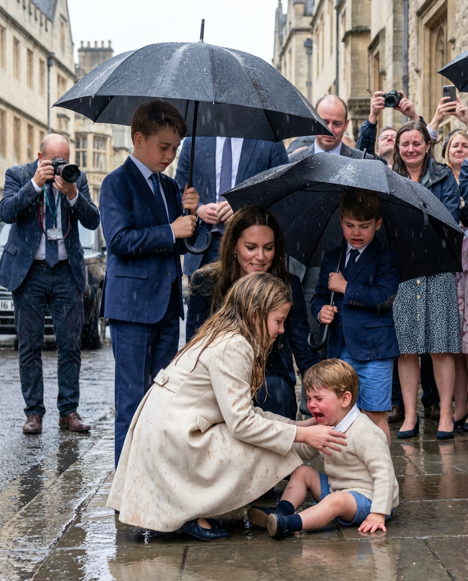 While George led the way, Princess Charlotte displayed her thoughtful nature in a heartwarming moment that couldn’t go unnoticed. As it began to rain, a nearby child slipped and fell, causing the baby to cry. Without hesitation, Charlotte ran to the child’s side, comforting and supporting it. Witnesses described the little girl as a “little mother,” showcasing her nurturing instincts at the tender age of seven. This act of kindness is a testament to the values instilled in the Cambridge children, reflecting their parents’ commitment to empathy and compassion.