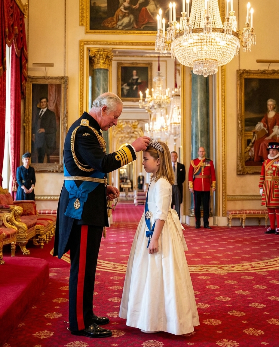 In a dramatic development that captivated royal observers and the public, King Charles III took an unprecedented step toward modernizing the British monarchy. In a lavish ceremony at Buckingham Palace, the King personally bestowed upon his granddaughter, Princess Charlotte, a glittering tiara and a new, meaningful title. This momentous event not only highlighted the evolving nature of the royal family but also marked the emergence of a new generation ready to shoulder the responsibilities of the monarchy.