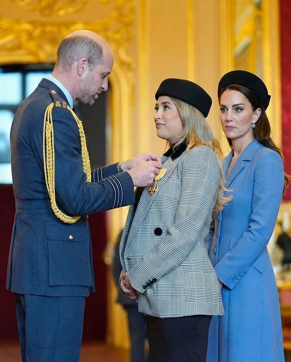 Social media platforms exploded with comments from royal fans, many expressing admiration for William’s charm and curiosity about Catherine’s absence. The hashtag #RoyalJealousy began trending, as fans gleefully speculated whether Catherine felt overshadowed by the beautiful woman receiving the medal. The general sentiment among fans was mild jealousy, as they tagged friends to share the joy.