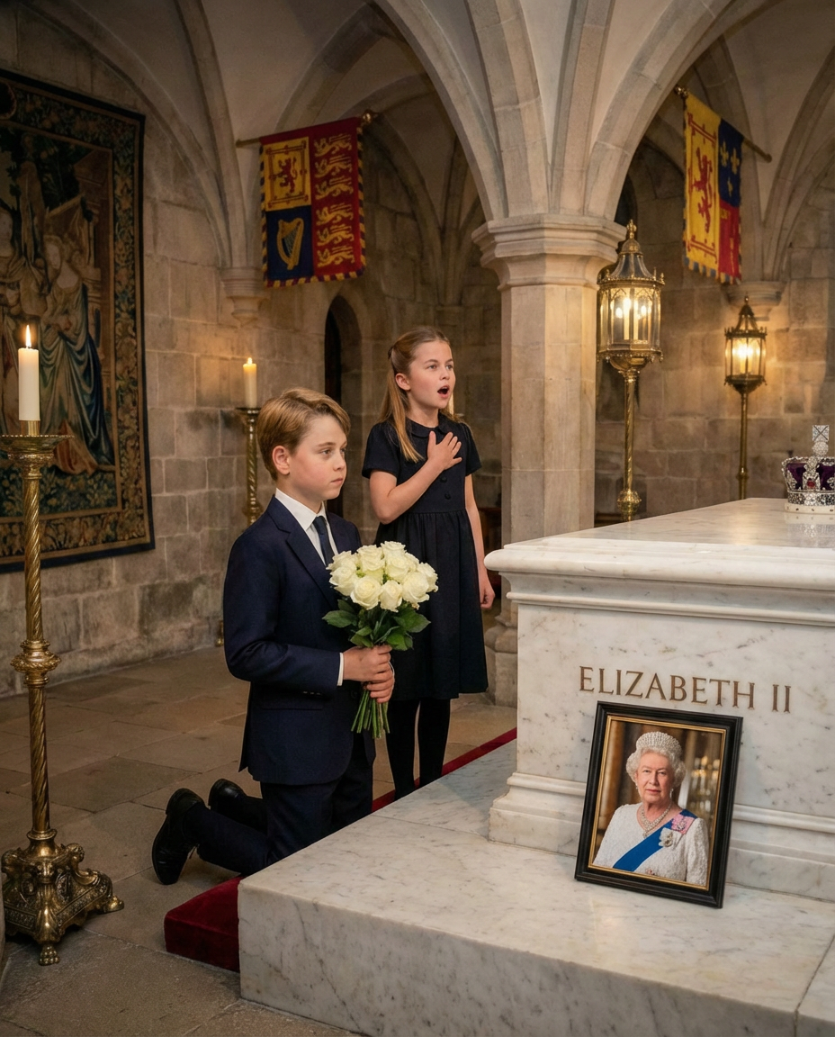 Prince George and Princess Charlotte’s secret visit to Queen Elizabeth II’s resting place is a testament to the enduring bonds of family and the power of love. Their actions remind us that grief is a shared experience, and that those we have lost can offer comfort and healing. As we reflect on this poignant moment, let us continue to uphold the values of love, remembrance, and togetherness that these two royal siblings so wonderfully demonstrated.