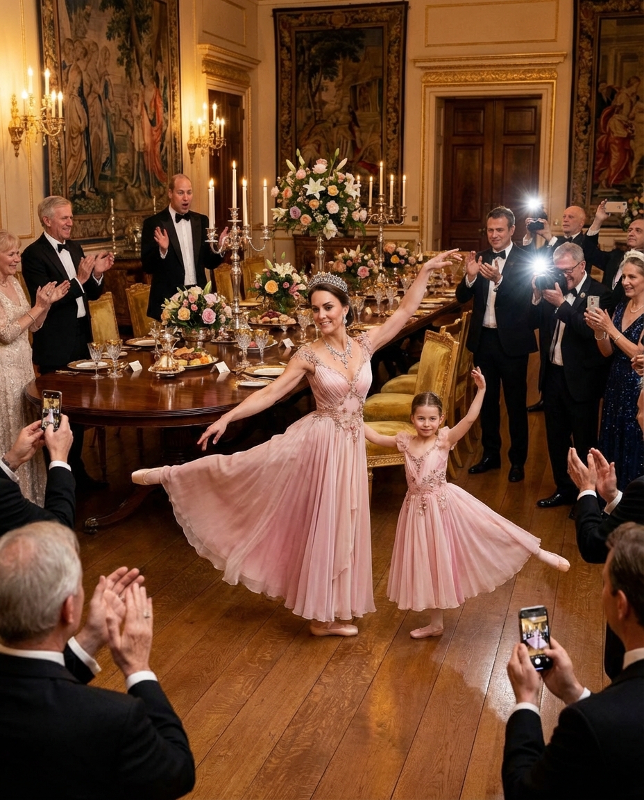 Princess Catherine, renowned for her composure and grace, took to the stage with her daughter, Princess Charlotte. Mother and daughter, resplendent in dazzling gowns under the palace lights, were poised to captivate the audience with a ballet performance reflecting both their passion for dance and their devotion to family tradition.