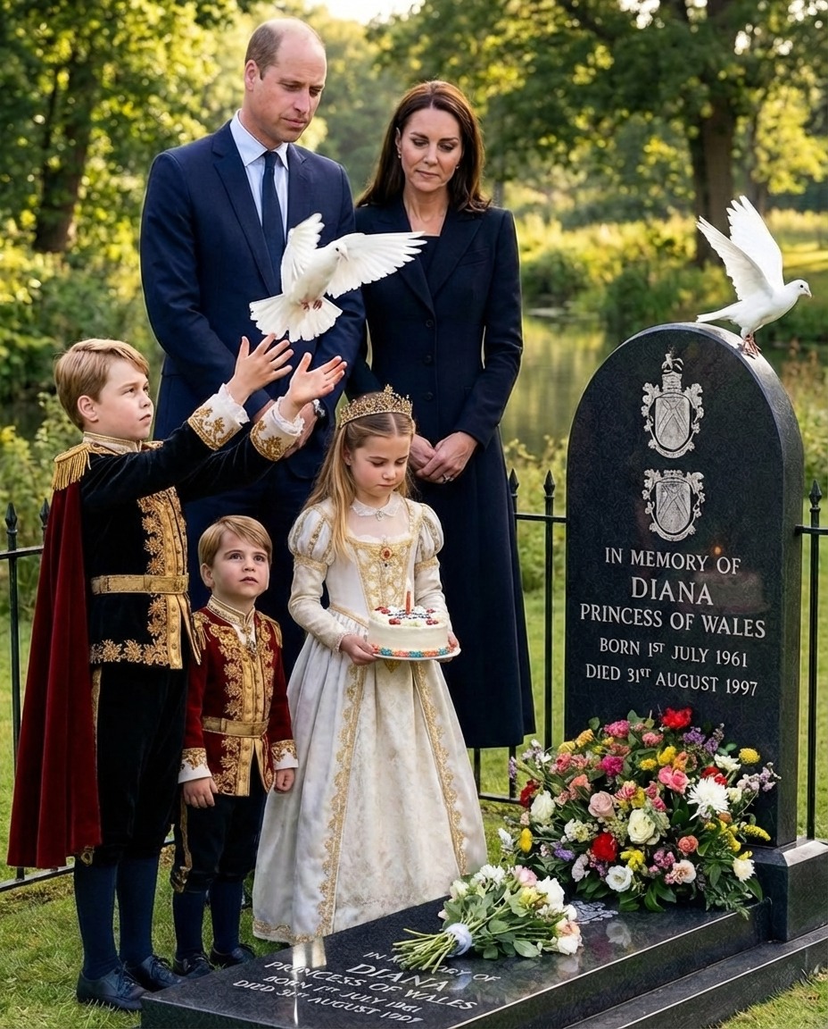 The memory ofĀ Princess Diana, the ā€œPeople’s Princess,ā€ continues to cast a warm, guiding light over the British Royal Family. In a recent, deeply private, and profoundly moving visit to her memorial,Ā Prince William and Catherine, the Princess of Wales, brought their three children—Prince George, Princess Charlotte, and Prince Louis—to honor the grandmother they never met but have grown to love through stories and family traditions. 🌿✨
