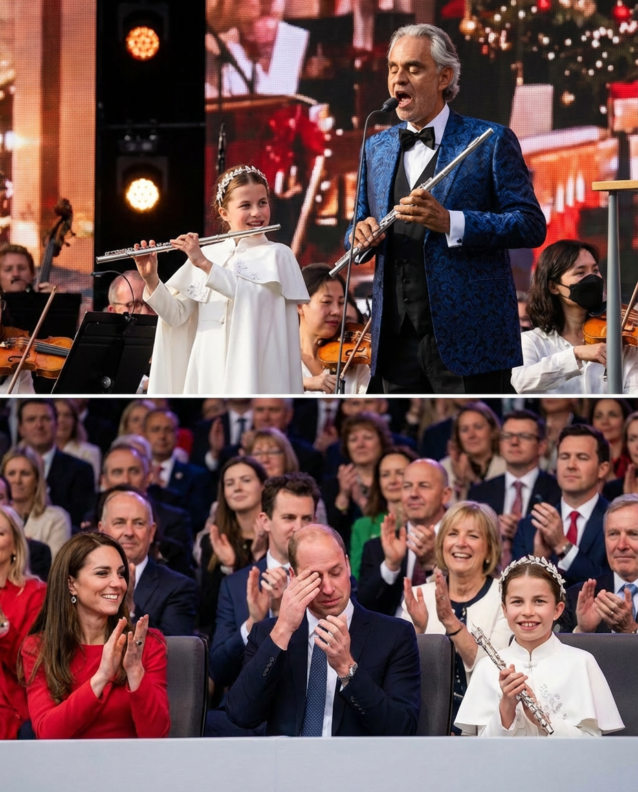With a bright smile, Princess Charlotte exclaimed, “This song is for you, Father William!” This simple yet profound declaration set the tone for a performance that would resonate deeply with both her father and the audience. The song chosen for the duet was a classic piece, beautifully arranged to showcase both Charlotte’s flute skills and Bocelli’s powerful vocals.