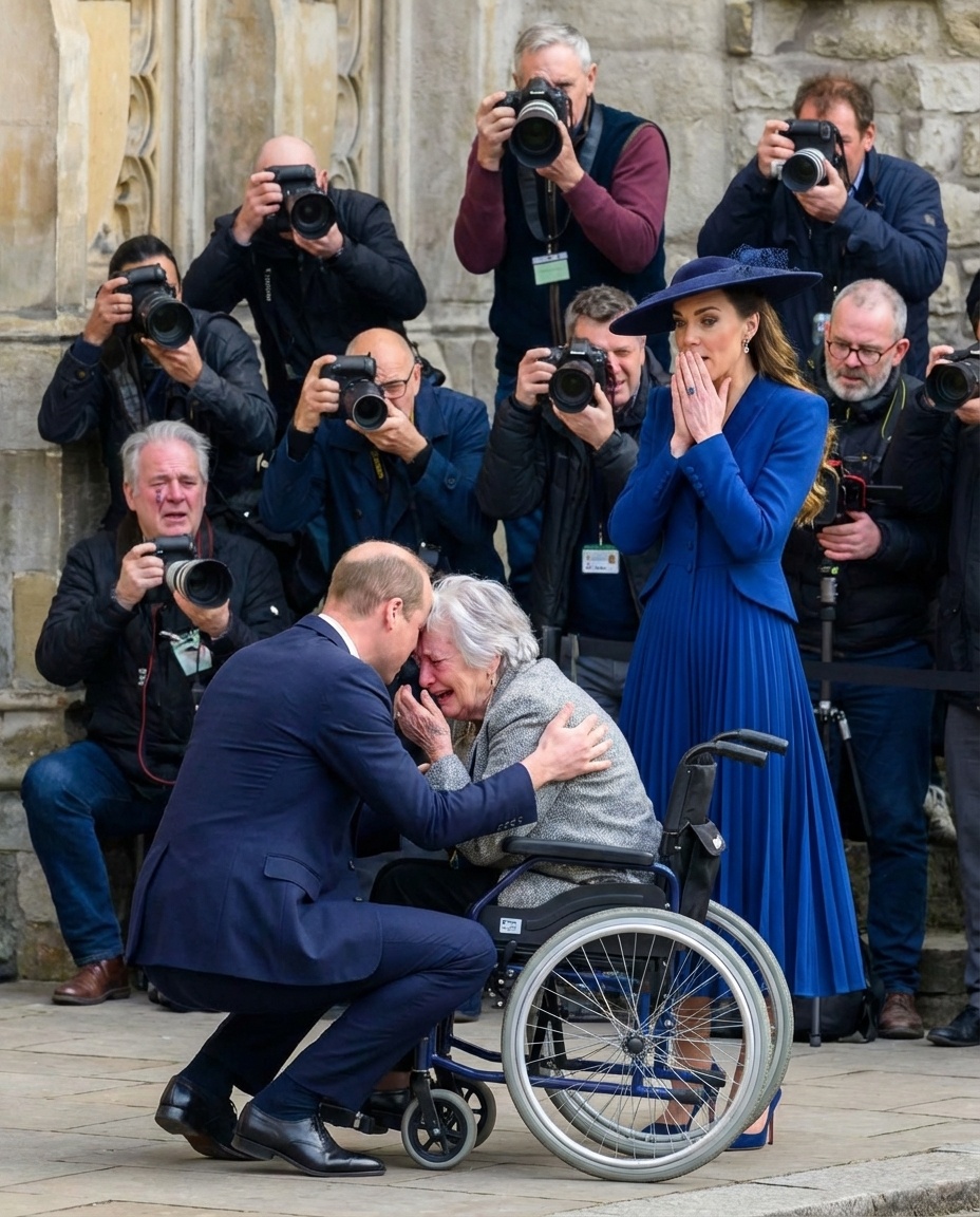 As the ceremony unfolded, Prince William’s abrupt departure from the procession caught everyone by surprise. The future king, known for his strict adherence to royal protocol, made an unexpected decision that stunned onlookers. Witnesses described the atmosphere shifting from solemn to emotional as William hurried toward an elderly woman seated in the front row. This moment was not merely a breach of protocol; it was a testament to the prince’s genuine compassion and humanity.