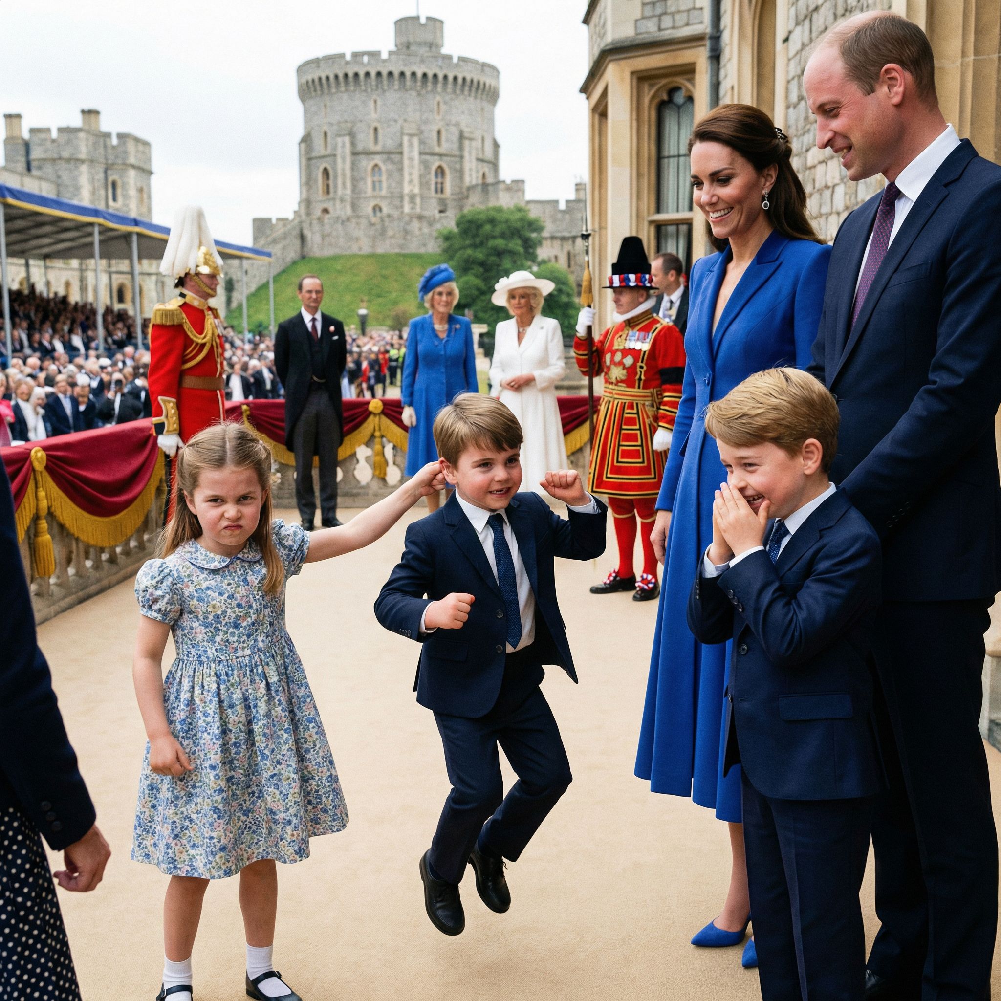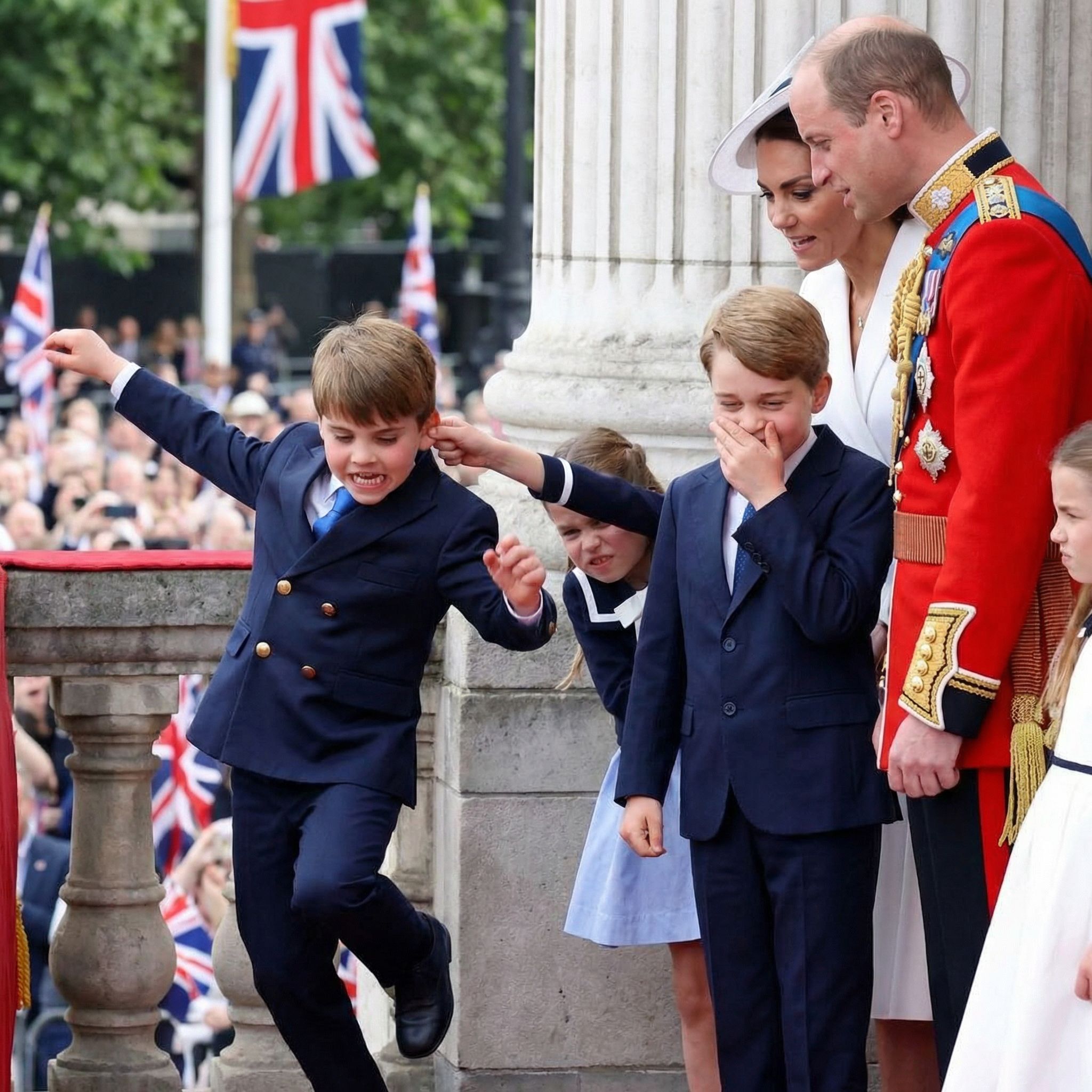 One of the most iconic moments of sisterly guidance occurred during the late Queen Elizabeth II’s Platinum Jubilee in 2022. While the world was giggling at Prince Louis’s legendary mischievous faces on the balcony, Charlotte was quietly at work. 💂♂️✨