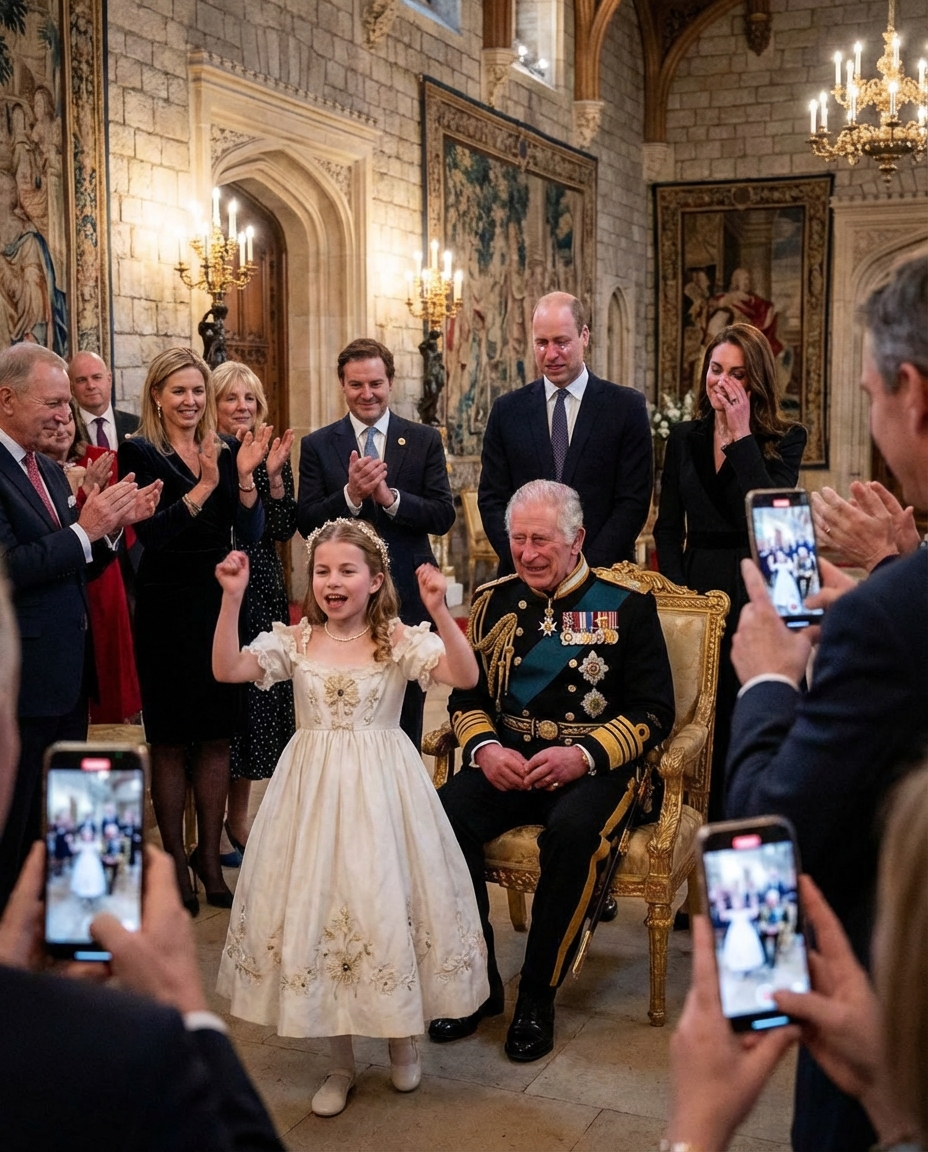 In a delightful display of childhood innocence and talent, Princess Charlotte recently captivated her family and onlookers with a spontaneous singing and dancing performance in front of King Charles at Windsor Castle. This enchanting moment, filled with joy and emotion, not only showcased the young princess’s budding personality but also brought tears of joy to her parents, the Duke and Duchess of Cambridge, Prince William and Princess Catherine. As the audience erupted in applause and captured the moment on their phones, it became a memorable highlight in the royal family’s ongoing story.