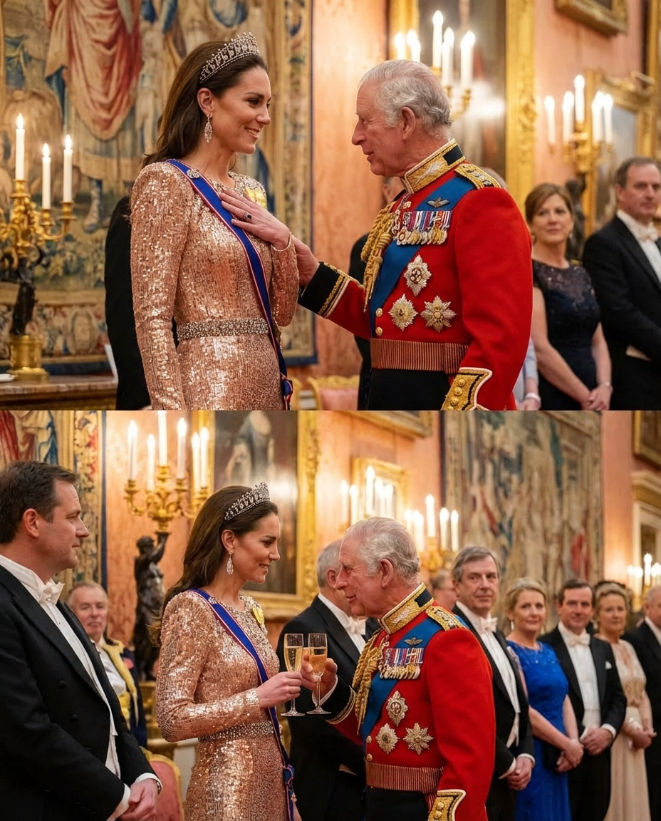One of the most notable moments of the evening was the debut appearance of Princess Catherine’s new royal accessory: the King Charles’ Royal Order. This rare honor, placed alongside the royal order of the late Queen Elizabeth II, reflects the King’s personal appreciation and trust in Catherine.