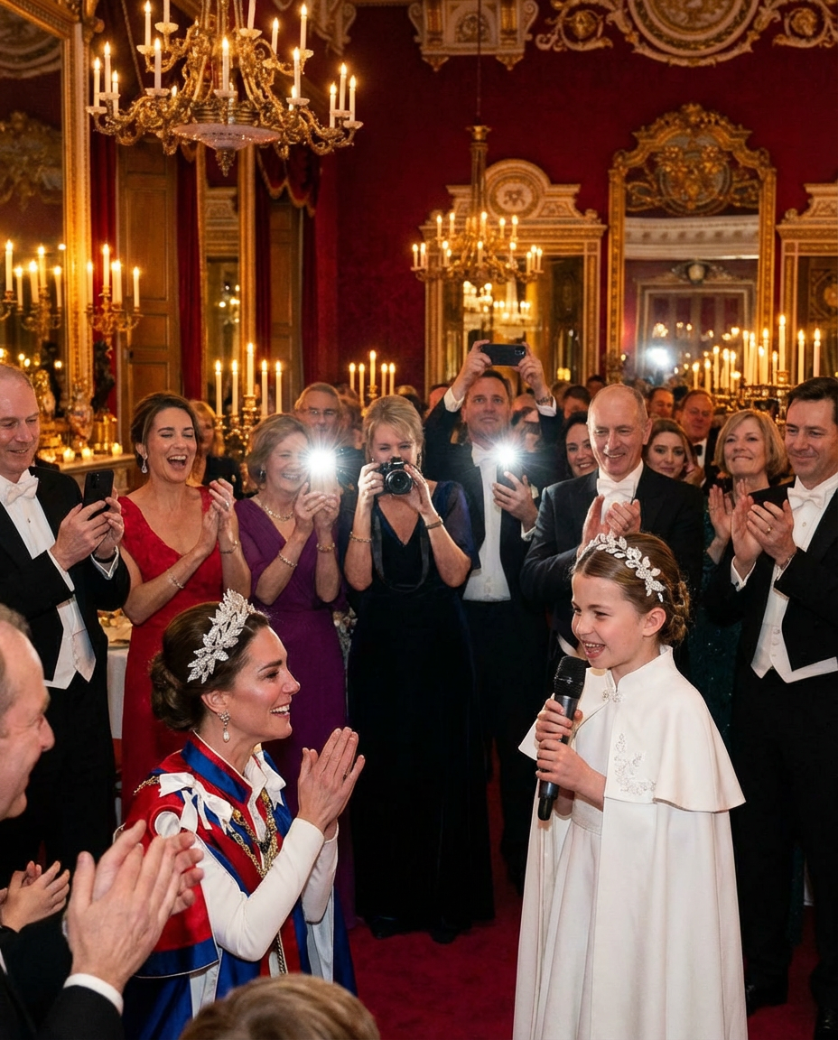 On a serene evening, Buckingham Palace transformed into a magical venue, illuminated by the soft, flickering candlelight. The atmosphere was filled with excitement as guests gathered to witness Princess Charlotte’s special performance. Dressed in a graceful outfit perfectly suited to the palace’s elegance, the young princess exuded a charm and confidence far beyond her years. The atmosphere was incredibly lively, with attendees eagerly awaiting the moment Charlotte would step onto the stage.
