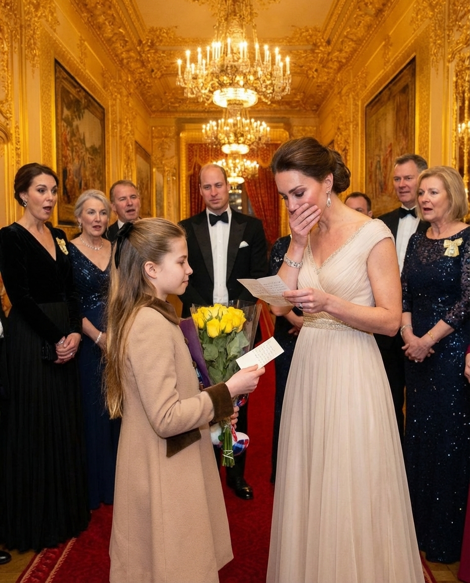 As the evening drew to a close, Princess Charlotte, known for her sweet demeanor and thoughtful nature, took a moment to draw near her mother. In her small hands, Charlotte held a beautiful bouquet, carefully arranged with vibrant flowers reflecting her youthful spirit. Beside the bouquet was a small letter, written by Charlotte herself with heartfelt sincerity.
