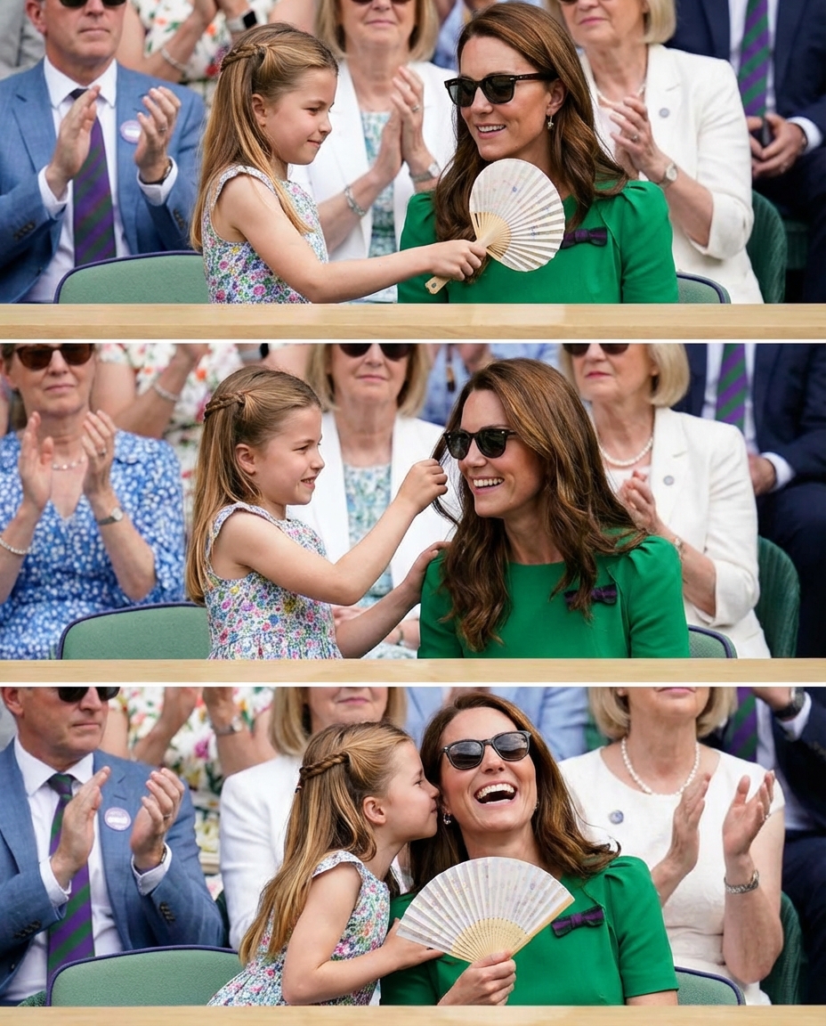 As the summer sun beat down on the royal encampment, Charlotte, stylish in her sunglasses and carrying a Wimbledon-branded hand fan, turned her attention to her mother. In a moment captured by photographer Carw Tang, she gently fanned Princess Catherine, offering comfort to her mother in the heat. This brief but heartfelt gesture not only demonstrated Charlotte’s empathy but also highlighted the bond between mother and daughter.