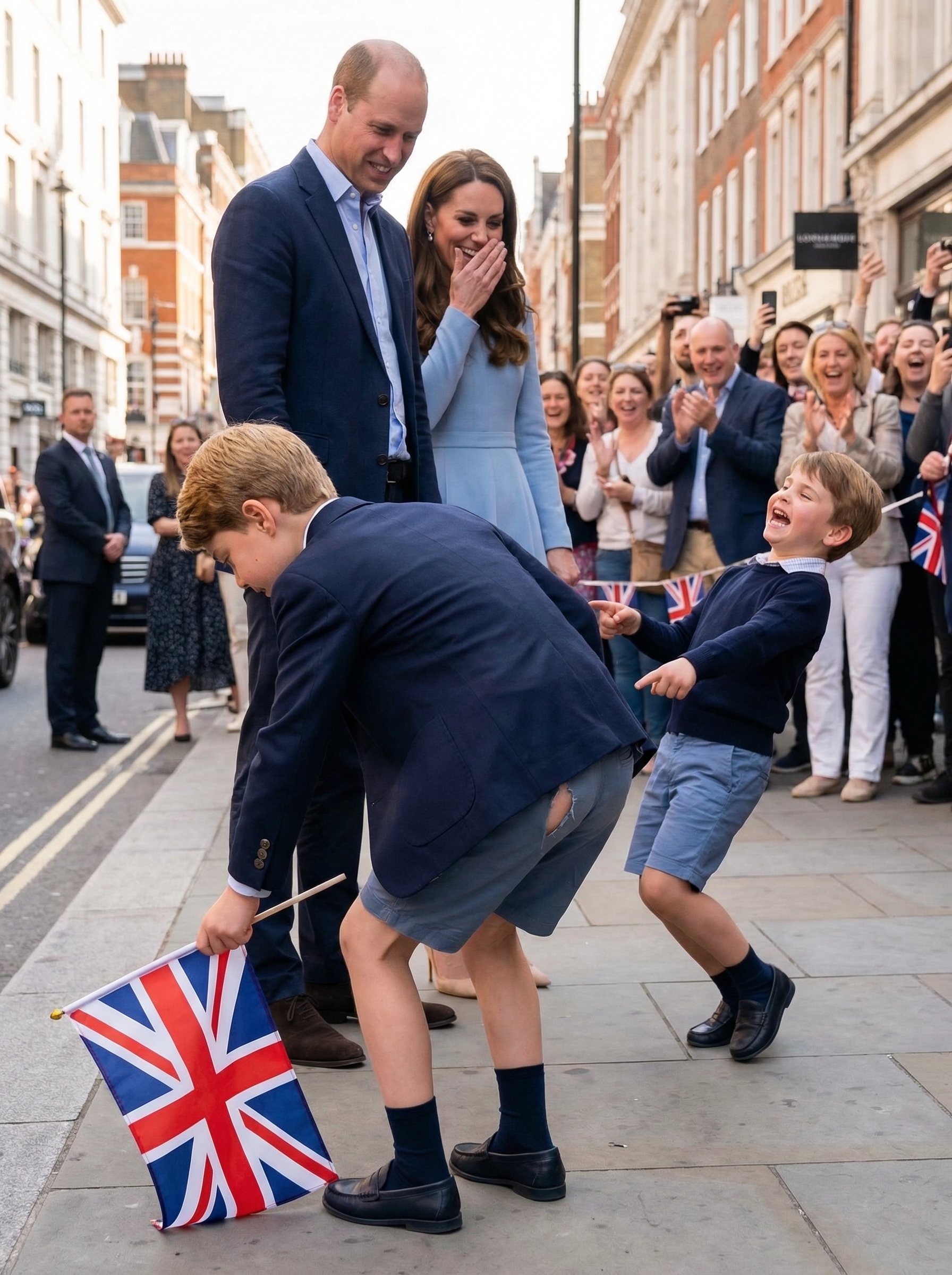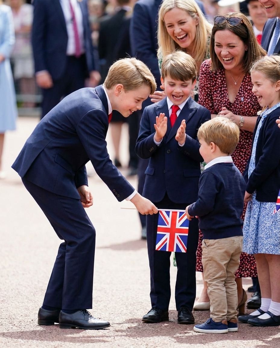 Beside them, George’s friend Louis didn’t let the moment pass quietly. He began to clap enthusiastically, turning a simple gesture into a celebrated event. Louis’s innocent and witty commentary sparked laughter among the nearby parents and onlookers, perfectly encapsulating the spirit of community and mutual support. 🎊