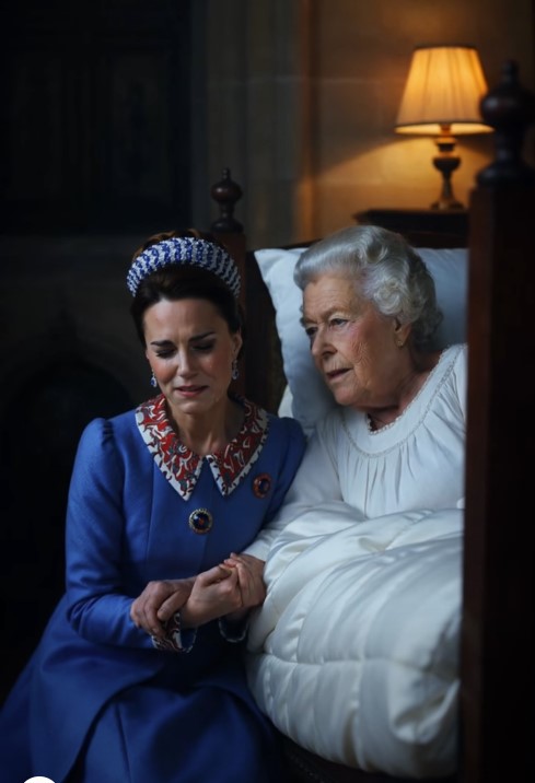 The atmosphere was heavy, reflecting the nation’s collective grief. Catherine sat beside the Queen, her own throat tight with an unexpressed sorrow, watching the woman who was both her sovereign and her “North Star” fade. With a strength summoned from decades of duty, Elizabeth reached for Catherine’s hand, her voice a translucent whisper carrying the scent of wisdom. 💖
